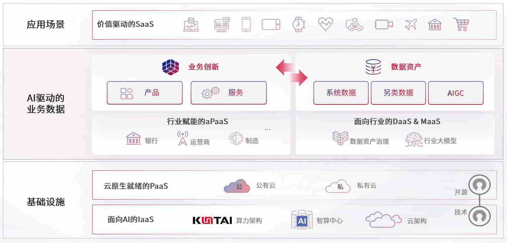 数字时代,,,围绕企业数字化转型的关键要素,,,NO钱包数码开创性的提出数云融合战略和技术体系框架,,,,着力在云原生、、数字原生、、AI原生和信创产业上架构产品和服务能力,,,为处在不同数字化转型阶段的快消零售、、汽车、、金融、、、、医疗、、、、政企、、、、教育、、运营商等行业客户提供泛在的敏捷IT能力和融合的数据驱动能力,,构建跨界融合创新的数字业务场景和新业务模式,,,,助力企业级客户建立面向未来的核心能力和竞争优势,,,,全面推动社会的数字化、、、智能化转型升级。。。。
